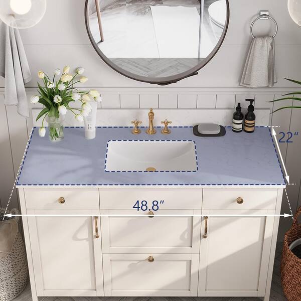 49 in. W x 22 in. D Engineered Stone White Rectangular Single Sink Vanity Top with Backsplash and 3-Faucet Hole