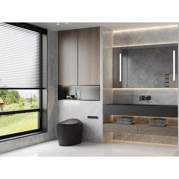 Elongated Bidet Toilet 1.45/1.1GPF Dual Flush in Black with Auto Close/Flush, Heated Seat, Warm Water, Dryer