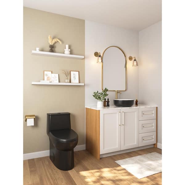 Ursa 12 in. Rough In 1-Piece 1.1/1.6 GPF Dual Flush Elongated ADA Compliant Height Toilet in Black with Soft Closed Seat