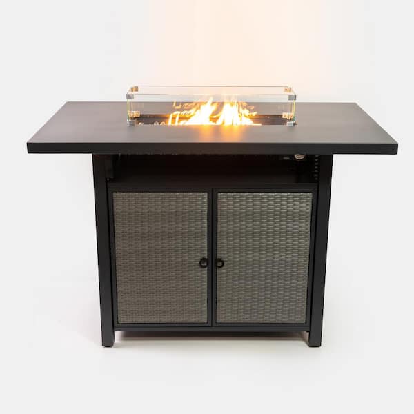 55 in. Metal Propane Outdoor Rectangular 40,000 BTU Barstool Fire Pit Table Black