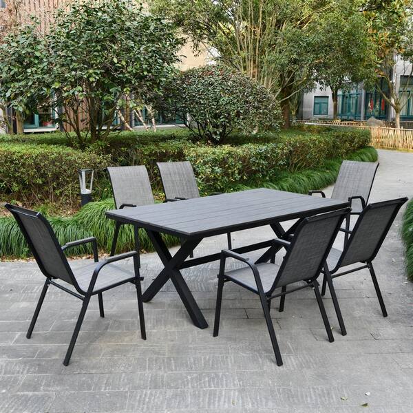 7 Piece Gray Outdoor Dining Chairs and Table Set