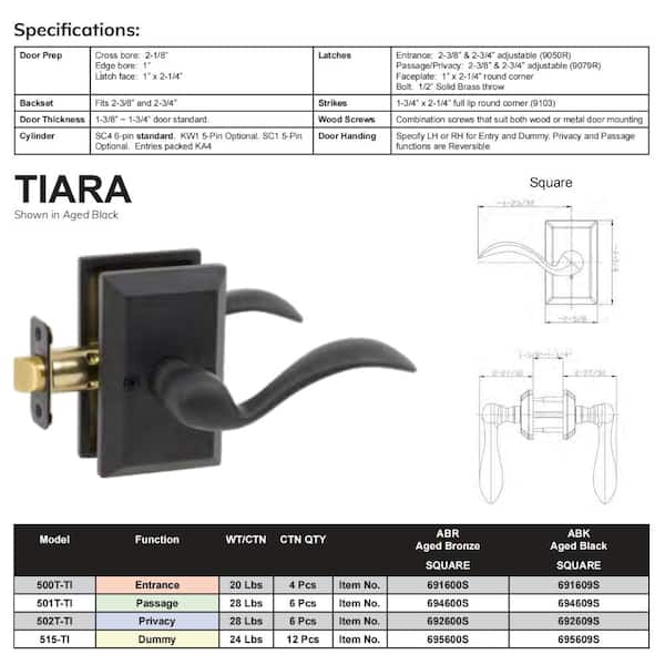 Sandcast Tiara Aged Black Single Dummy Right Hand Door Lever with Square Backplate