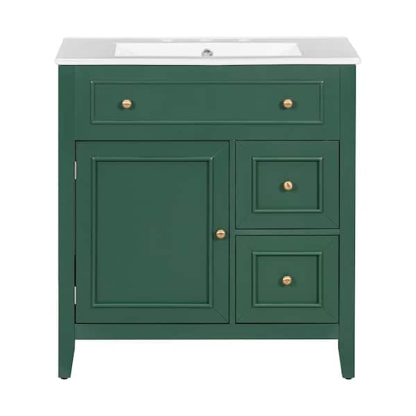 30 in. W x 18.3 in. D x 32.5 in. H Single Sink Freestanding Bath Vanity in Green with White Ceramic Top