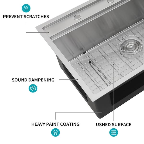 33 in. Drop-In 2-Hole Single Bowl 16-Gauge Brushed Stainless Steel Ledge Workstation Kitchen Sink with Accessories