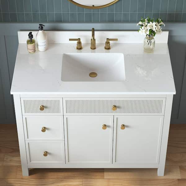 43 in. W. x 22 in. D Bianco Bella Quartz White Rectangular Single Sink Bathroom Vanity Top in White