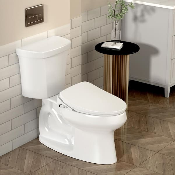Deluxe Spa Electric Plug-in Smart Soft Close Bidet Seat for Elongated Toilets in White with Nozzle and Remote Control