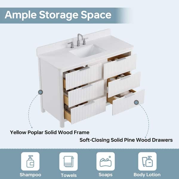 • Freestanding 49 in. vanity with attached top and single sink