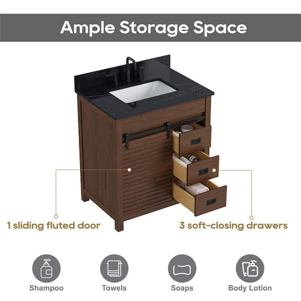 Harris 31 in. Single Sink Freestanding Brown Bath Vanity with Black Sintered Stone Top and Backsplash Assembled