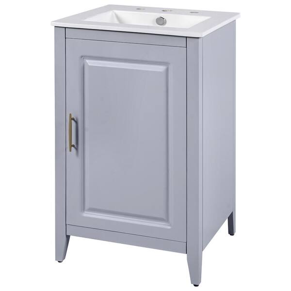 Kimi 20.3 in. Single Sink Functional Modern Freestanding Grey Bath Vanity with White Ceramic Top Unassembled