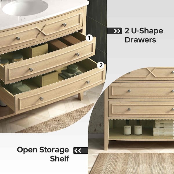 Melva 37 in. Single Sink Freestanding Oak Bath Vanity with Carrara White Engineered Stone Top and Backsplash Assembled
