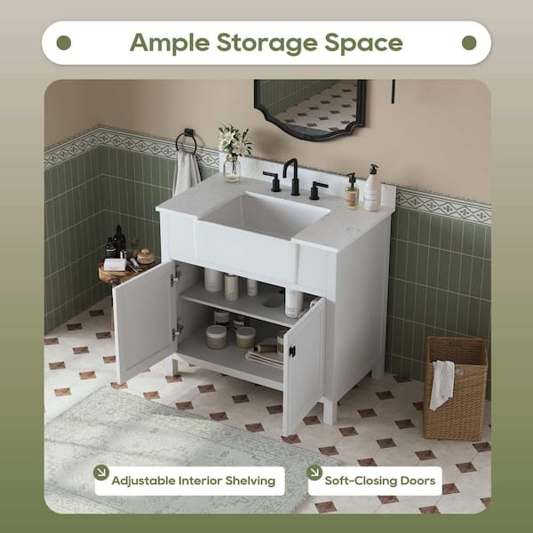 Richfield 37 in. Single Sink Freestanding White Bath Vanity with White Engineered Stone Top and Backsplash Assembled