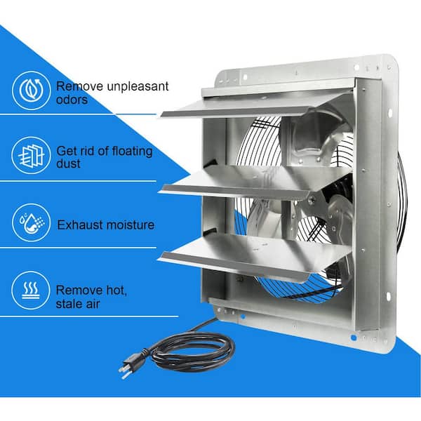 14 in. Shutter Exhaust Fan, 1520CFM, Wall Mounted with 1.65m Power Cord, for Garages, Attics, Electric Powered Aluminum