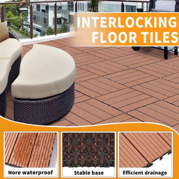 11.8 in. x 11.8 in. Interlocking Deck Tiles (Set of 20), Waterproof Wood Plastic Composite Outdoor Floor Tiles in Brown