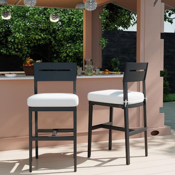 Barvallo Aluminum Outdoor Bar Stool with Sunbrella Cast Silver Cushion (2-Pack)