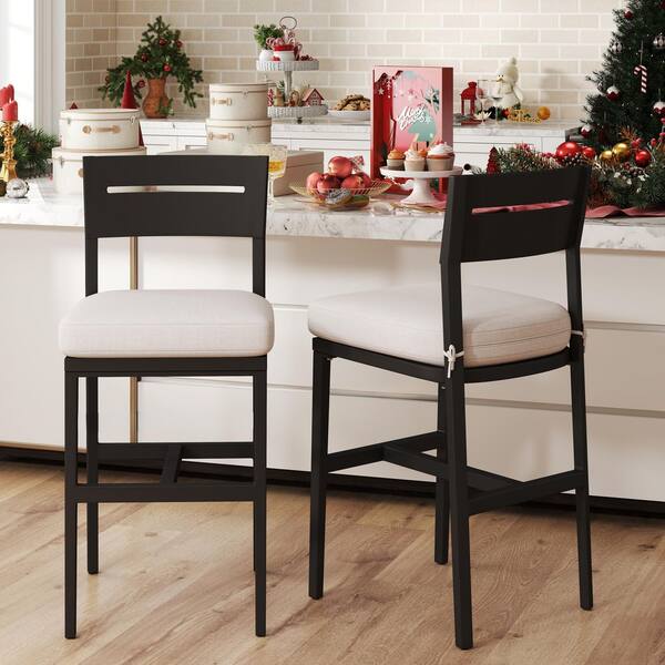 Barvallo Aluminum Outdoor Bar Stool with Sunbrella Cast Silver Cushion (2-Pack)