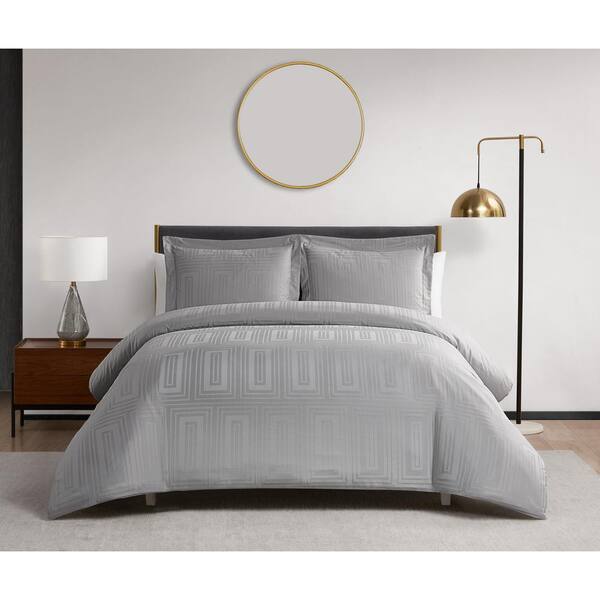 Cityblocks Silver Grey 3-Piece Cotton Rectangle Jacquard Duvet Set - Full/Queen