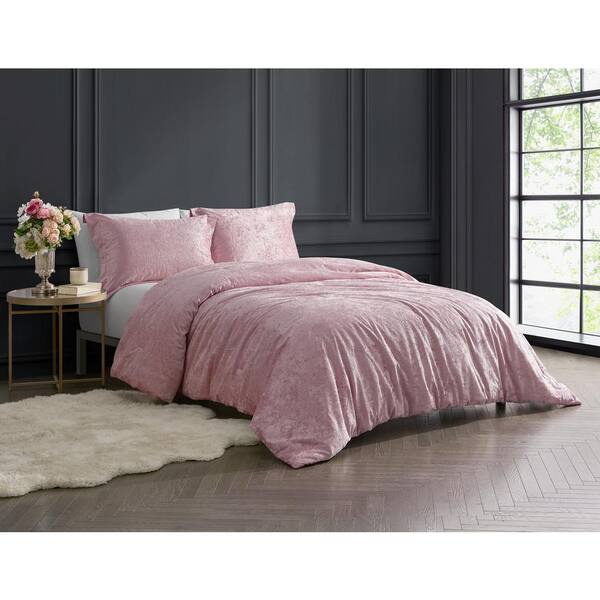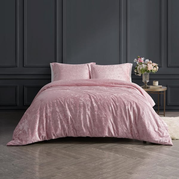Rochelle Outline Floral Rose 3-Piece Crushed Velvet Comforter Set-King