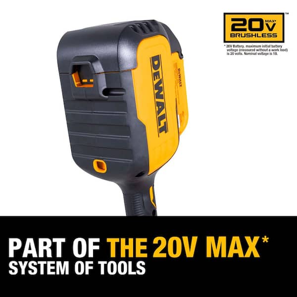 • Brushless motor and compatible with 20-Volt DEWALT batteries