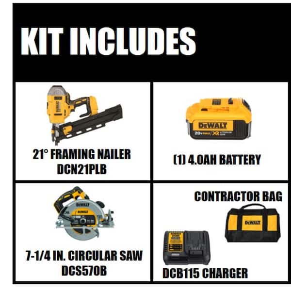 20-Volt MAX XR Lithium-Ion 21° Cordless Framing Nailer Kit and Brushless 7-1/4 in. Circular Saw (Tool Only)