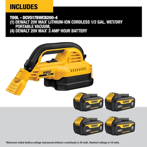 20-Volt Maximum Lithium-Ion Cordless 1/2 Gal. Wet/Dry Portable Vac with (4) 20-Volt 3.0 Ah Maximum Premium Battery Packs