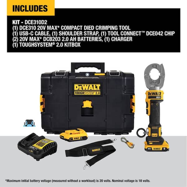 20V Lithium-Ion Cordless Compact Died Crimping Tool Kit with (2) 2Ah Batteries, Charger, Strap and Tough System 2.0 Case