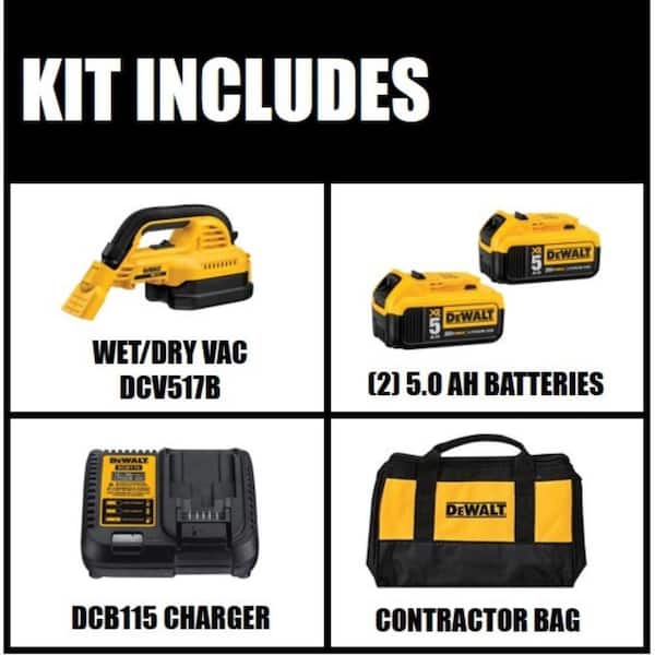 20V MAX Cordless 1/2 Gal. Wet/Dry Portable Vacuum, (2) 20V 5.0Ah Premium Batteries, Charger, and Kit Bag