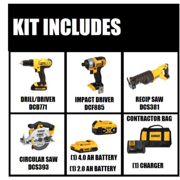 • Includes 20V drill/driver, circular saw, and reciprocating saw