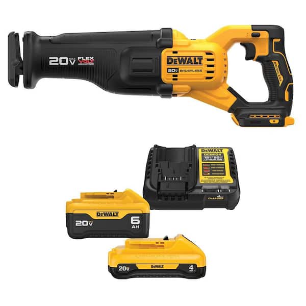 20V MAX Cordless Brushless Reciprocating Saw, (1) 20V 6.0Ah and (1) 20V 4.0Ah Batteries, and Charger