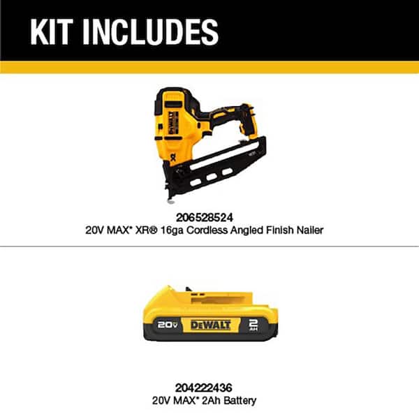 20V MAX XR Lithium-Ion Cordless 16-Gauge Angled Finish Nailer with 20V MAX Compact Lithium-Ion 2.0Ah Battery Pack