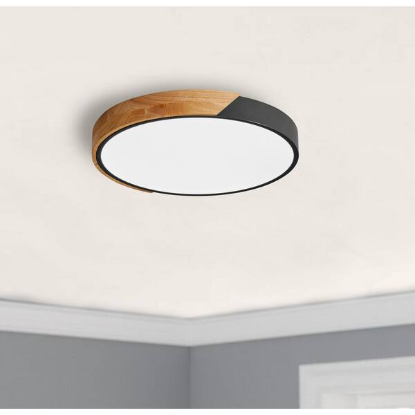 15.74 in. 6000K Classic Black LED Flush Mount Light with Black PS Shade 36-Watt Close to Ceiling Light