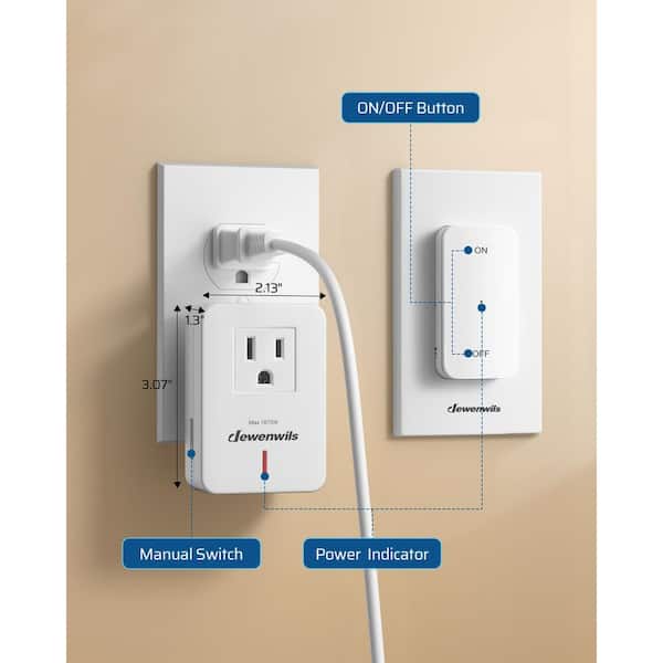 15 Amp Indoor Wireless Remote Control Outlet, Electrical Plug in On/Off Power Switch