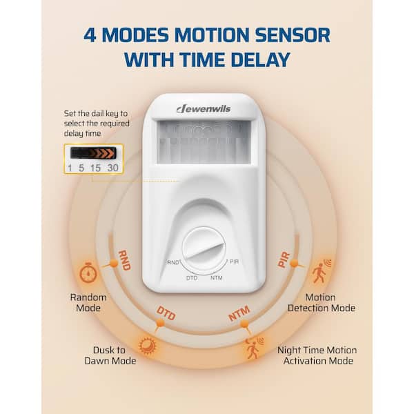 15 Amp Wireless Motion Sensor with Dusk to Dawn Remote Control Light Switch, White (1-Pack)
