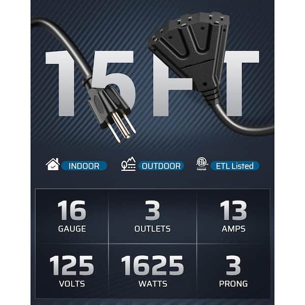 • 15 FT Tri-Tap Extension Cord Multiple Outlet