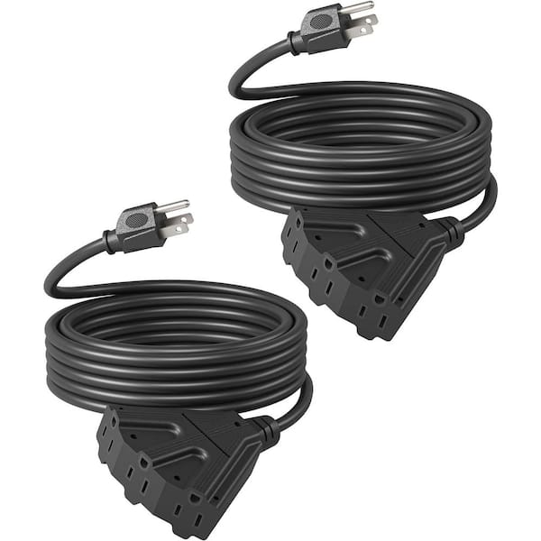 15 ft. 16/3 Heavy Duty SJTW Indoor/Outdoor Extension Cord with Tri-Tap Splitter, Black (2-Pack)