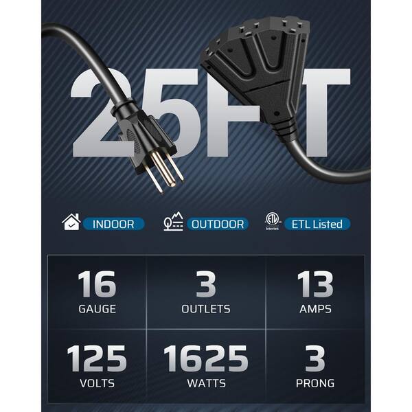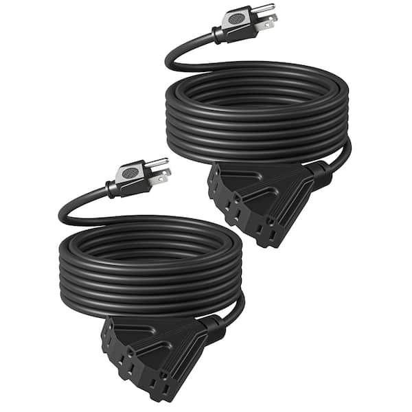 25 ft. 16/3 Heavy Duty SJTW Indoor/Outdoor Extension Cord with Tri-Tap Power Cable, Black (2-Pack)