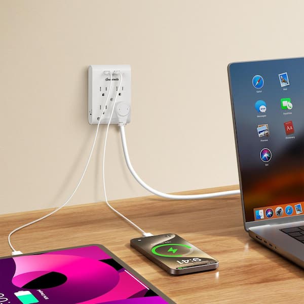 • 4 AC outlets plug-in wall adapter with 2 USB ports(3.1A Total)