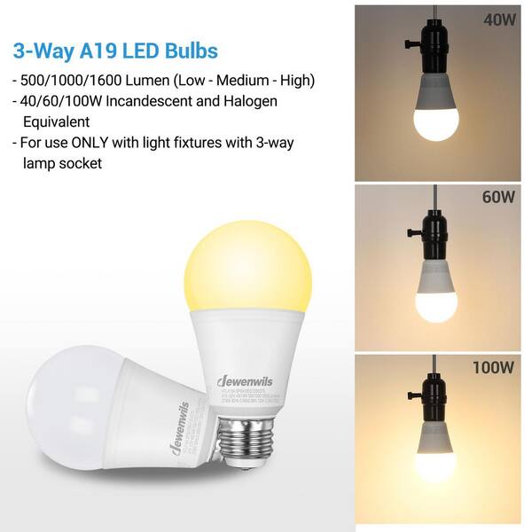 40/60/100-Watt Equivalent A19 3-Way Dimmable LED Light Bulb, 2700K Warm White (4-Pack)