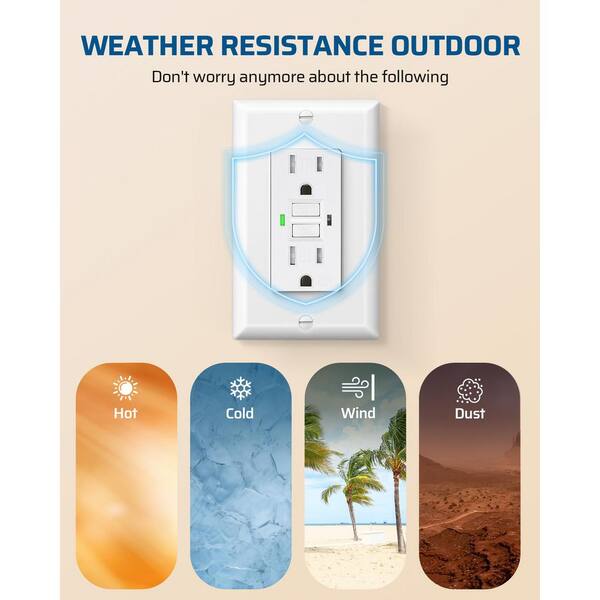 5-Pack GFCI Outlet 15Amp,Weather-Resistant(WR), Tamper-Resistant(TR),Self-Test, LED Indicator, Wallplate Included, White