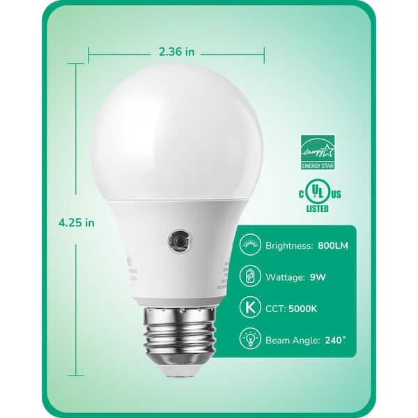 60-Watt Equivalent A19 Dimmable LED Light Bulb, 5000K Bright White (4-Pack)