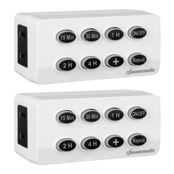 Indoor Countdown Timer with Repeat Function and Lit Up Buttons, Auto Shut Off Timer Outlet, (2-Pack)