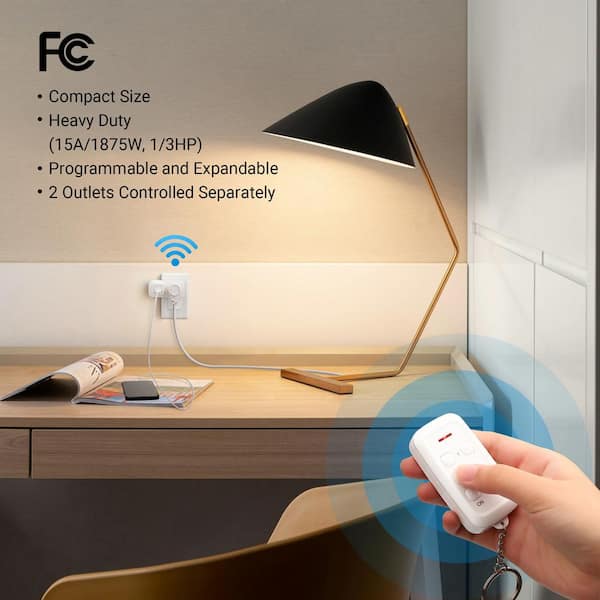 Indoor Remote Control Outlet Switch Set, 2 Independent Control, White
