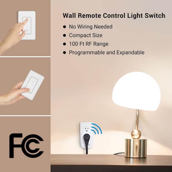 Indoor Wireless Remote Control Outlet, Programmable and Expandable, White