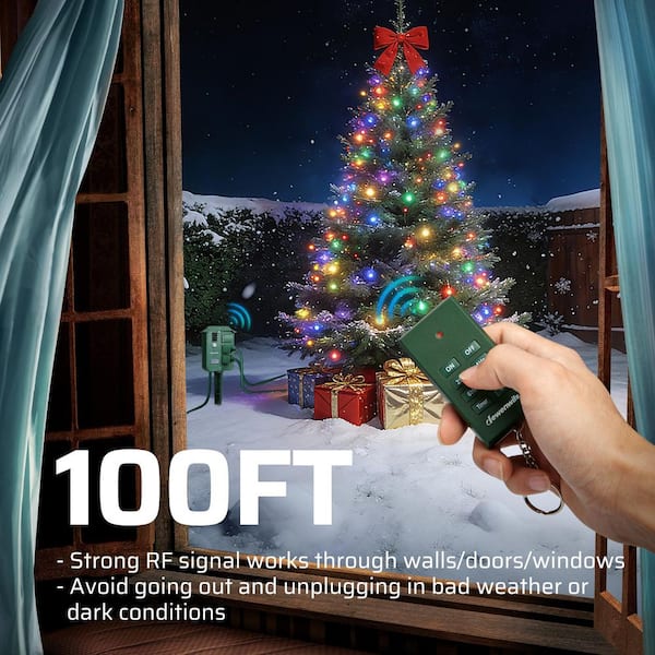 Outdoor Power Stake Timer Waterproof, 100 ft. Wireless Remote Control, 6 Grounded Outlets, 6 ft. Extension Cord