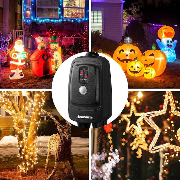 Outdoor Remote Control Light Sensor Countdown Timer Waterproof with 2-Grounded Outlets for Christmas String Lights
