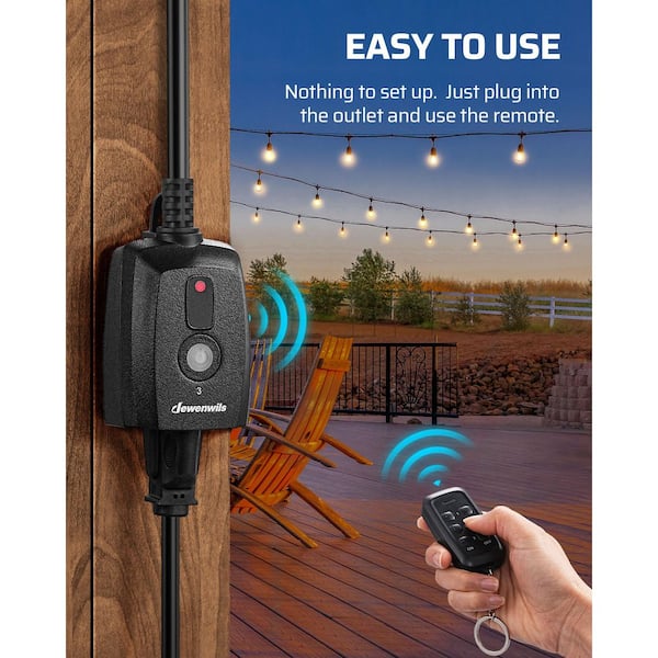 Outdoor Wireless Remote Control Outlet 125V 15A 1 Remote 3 Outlets 100FT Control Range Weatherproof, FCC Listed
