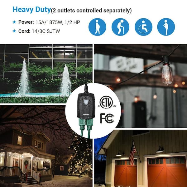 Outdoor Wireless Remote Control Outlet, 2 Independent Control Sockets Weatherproof