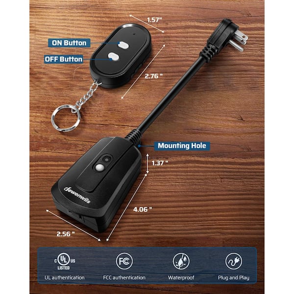 Remote Control Outlet with 2 Wireless Remotes, Weatherproof Remote Light Switch, 2 ft. Long Extension Cord, 100 ft.