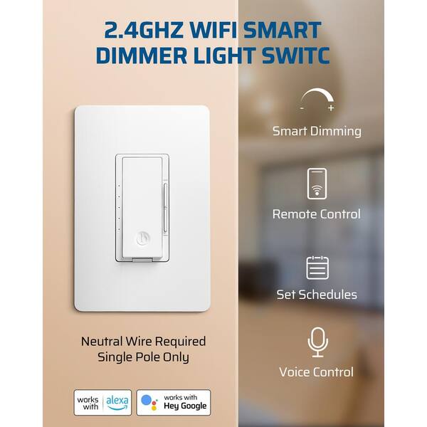 Smart Dimmer Switch, 2. 4 GHz 1-way Wi-Fi Dimmer Light Switch Works with Alexa and Google Assistant, Needs Neutral Wire