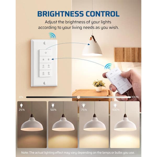 White ON/Off 1-way Adjustable Brightness Button Dimmer Switch for CFL, Halogen, Incandescent, LED, 1-Pack
