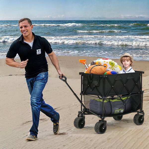 10 cu. ft. Wagon Cart 2 Tiers 460 lbs. Load Collapsible Folding Cart Carbon Steel Utility Garden Cart with Tank Wheels